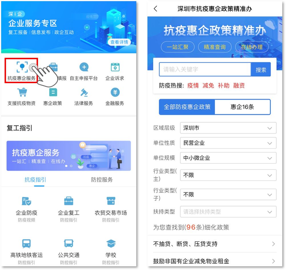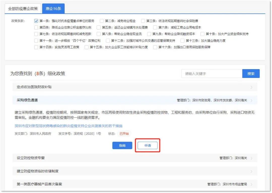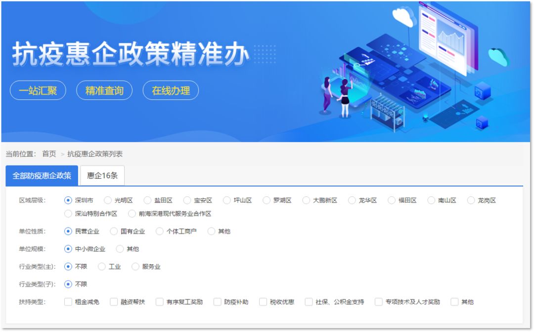 為了讓企業(yè)全面了解、便捷享受深圳市“惠企16條”政策優(yōu)惠,“深i企-抗疫惠企政策精準辦”還專門開設了“惠企16條”精準辦板塊(相關內容也已包含在全部抗疫惠企政策內)。