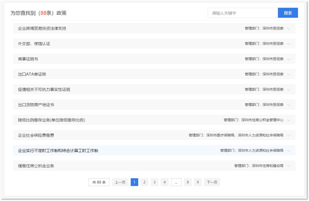 符合條件的政策會在“深i企-抗疫惠企政策精準辦”首頁下方的“為您查找到(*條)政策”中予以集中展現。