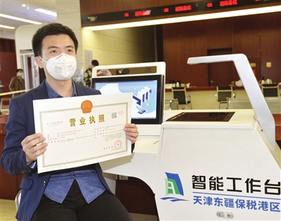 日前,在本市東疆保稅港區(qū)綜合服務(wù)大廳自助打照智能工作臺(tái)前,天津中遠(yuǎn)海拾號(hào)船舶租賃有限公司順利辦結(jié)設(shè)立登記業(yè)務(wù),并領(lǐng)取了天津市首張自助打印的營(yíng)業(yè)執(zhí)照。