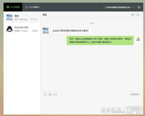 近日,記者在煙臺開發(fā)區(qū)政務服務中心看到,行政審批服務局商事登記處窗口工作人員劉少霞正在通過窗口“云客服”系統(tǒng),為辦事群眾解答企業(yè)設立登記方面的業(yè)務咨詢。兩人一問一答,實時溝通交流,利用方寸鍵盤就為群眾辦事消除了疑惑,解決了問題。