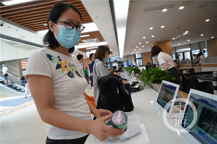 此外,上游新聞·重慶晨報(bào)記者注意到,在辦事窗口前,每一位工作人員旁邊都放著一個(gè)多媒體終端設(shè)備,設(shè)備屏幕上會(huì)同步顯示辦事群眾所辦理業(yè)務(wù)的流程及所需材料,讓市民對(duì)業(yè)務(wù)做到心中有數(shù),同時(shí)辦事群眾還可以在該設(shè)備上給工作人員的服務(wù)打分。