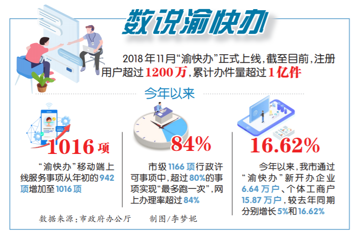 據(jù)介紹,自2018年11月正式上線以來,“渝快辦”已取得服務(wù)供給更豐富、線上服務(wù)更完善、線下服務(wù)更通暢、渠道多元更便捷等多項成效。