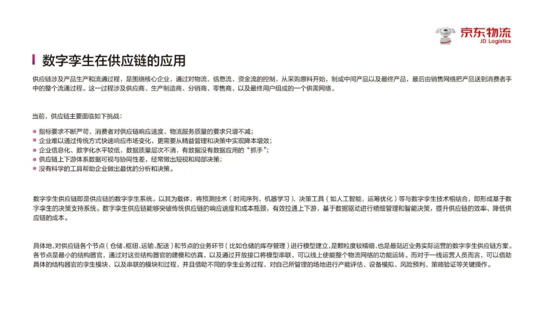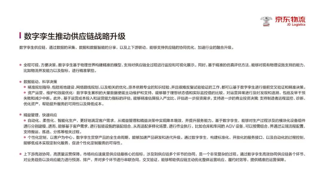 京東物流與中國物流與采購聯(lián)合會在“2020全球物流技術(shù)大會”共同發(fā)布了《數(shù)字孿生供應(yīng)鏈》白皮書,這也是業(yè)內(nèi)首個數(shù)字孿生供應(yīng)鏈白皮書發(fā)布。