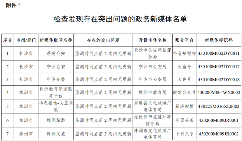5.檢查發(fā)現(xiàn)存在突出問(wèn)題的政務(wù)新媒體名單