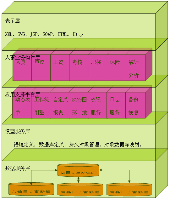 是人事業(yè)務(wù)有關(guān)的構(gòu)件,包括人員、單位以及依附關(guān)系的構(gòu)件組成如:工資、考勤、錄用、獎(jiǎng)懲、保險(xiǎn)、教育培訓(xùn)、檔案、任免等人事核心業(yè)務(wù)模塊。這些構(gòu)建主要是處理人事業(yè)務(wù)邏輯功能,不包含顯示等界面功能。