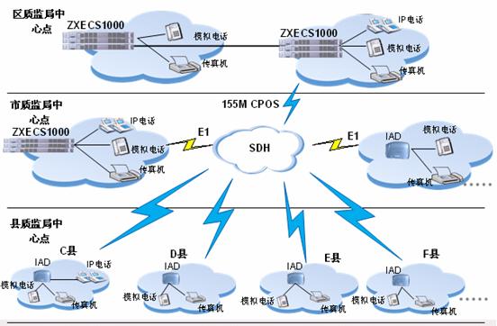 其它各接入節(jié)點(diǎn)采用IAD設(shè)備接入到ZXECS 1000,最大程度的降低了語音接入的成本,同時(shí)IAD靈活的擴(kuò)展性利于今后的升級(jí)。