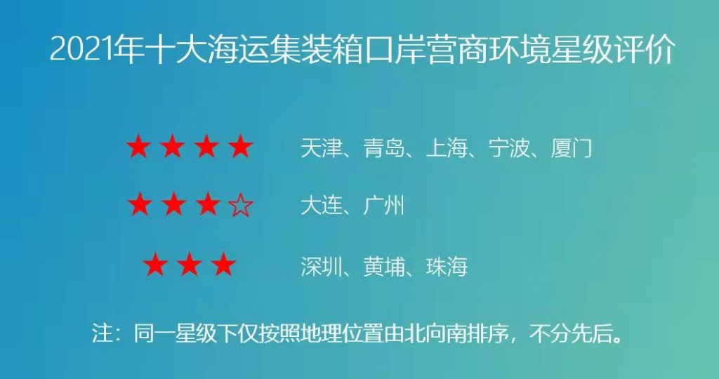 其他5個口岸表現(xiàn)同樣不俗:大連、廣州位居第二梯隊,獲評三星半;深圳、黃埔、珠海3個口岸均獲三星級好評。