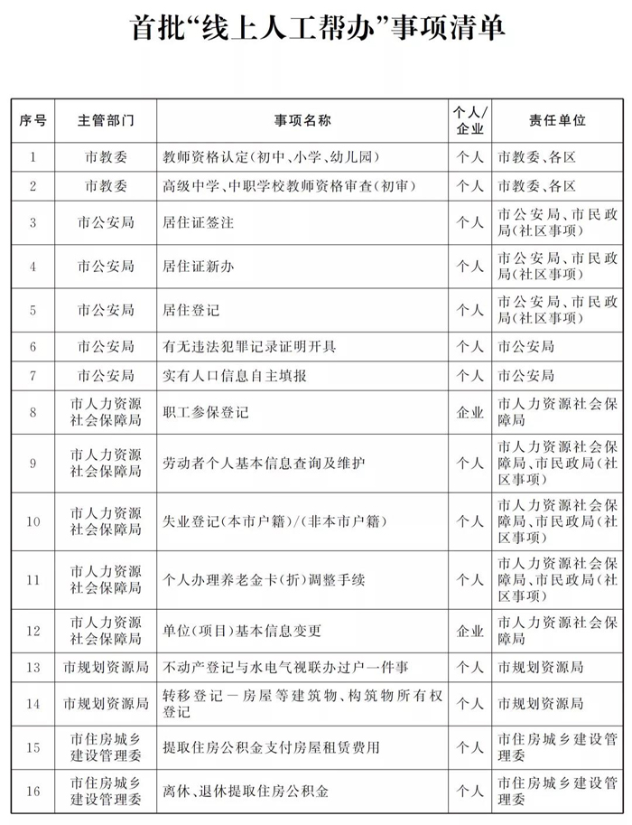 2021年底前,實現“線上人工幫辦”覆蓋本市辦件量居前的35個企業(yè)事項和個人事項。