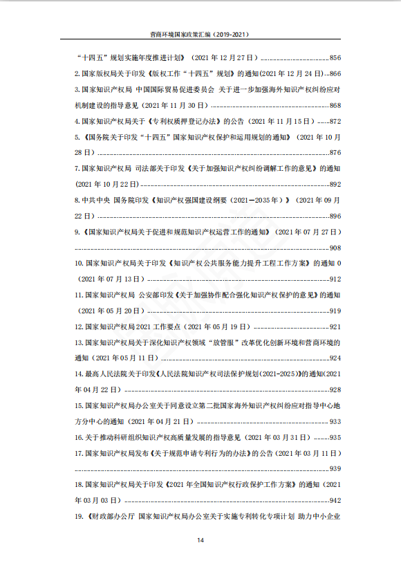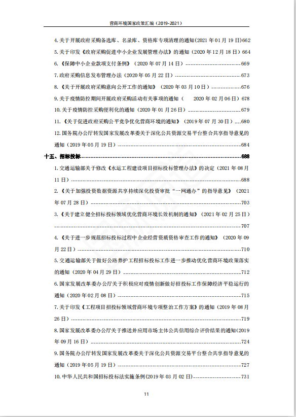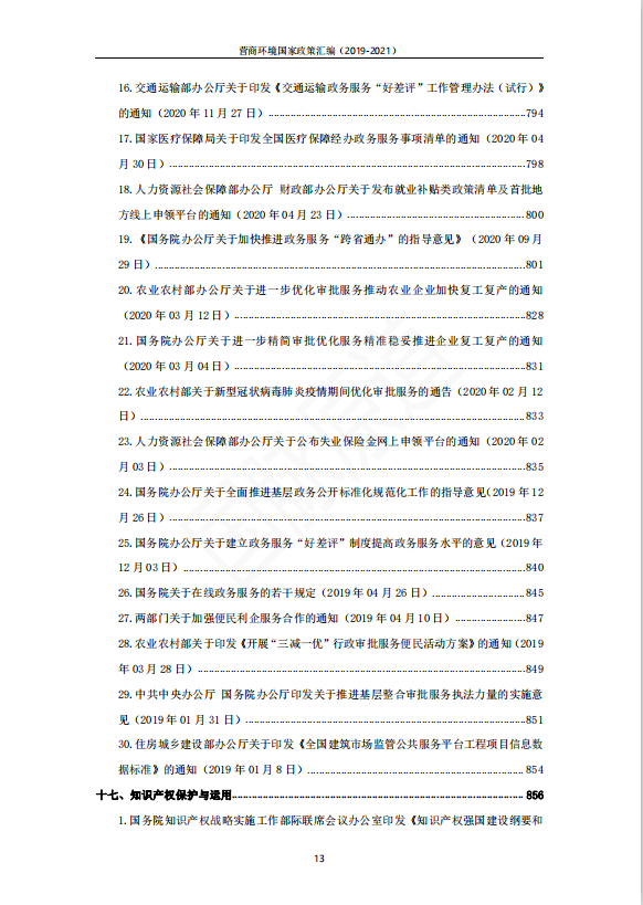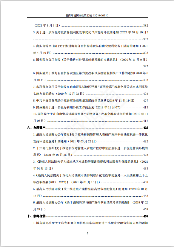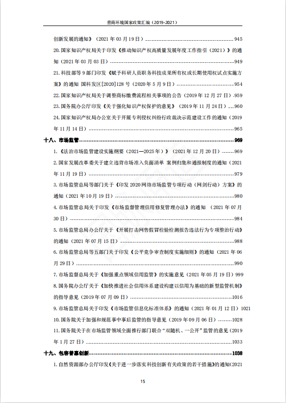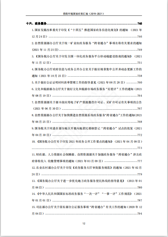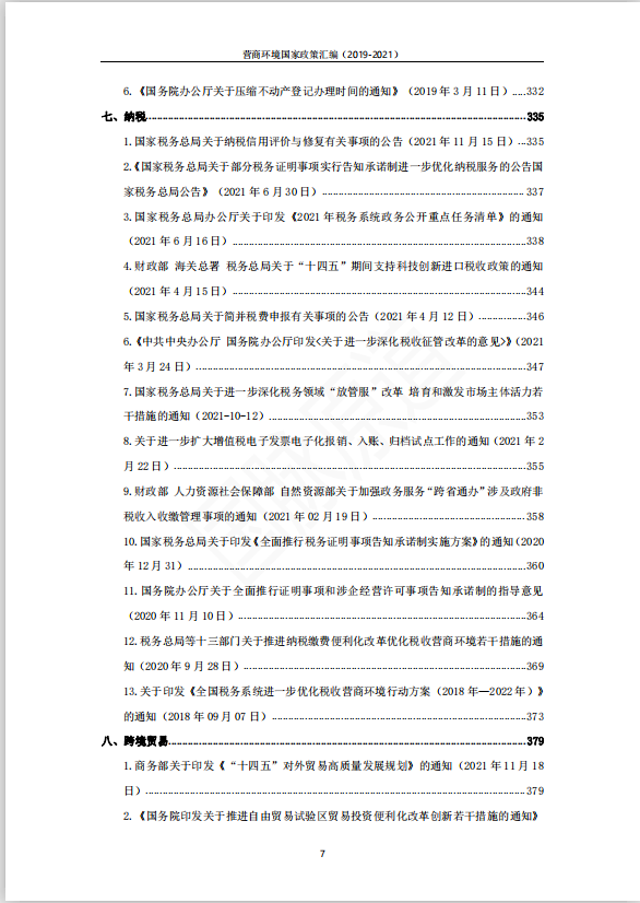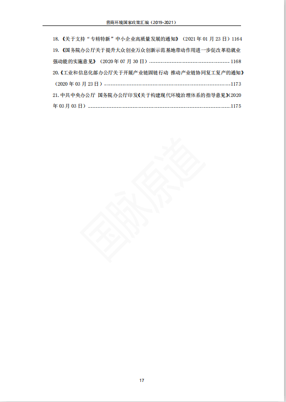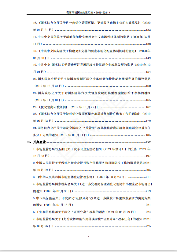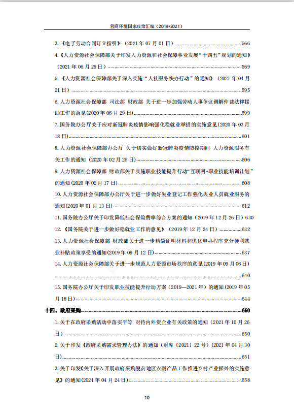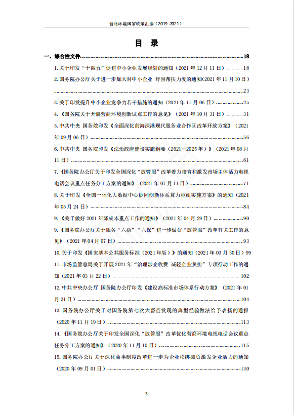 近年來,黨中央、國務院圍繞市場主體需求,以深化“放管服”為主要抓手,出臺了一系列政策文件,指引我國營商環(huán)境優(yōu)化工作的有序、有力開展。湖南國脈原道數(shù)據(jù)科技有限公司對國家層面2019年-2021年出臺的營商環(huán)境相關的政策文件、標準規(guī)范等進行了匯編,按照國家發(fā)改委營商環(huán)境評價的18大指標進行了分類整理,共計200余個文件。該匯編將持續(xù)性更新,是各地各部門優(yōu)化營商環(huán)境工作開展的重要參考。