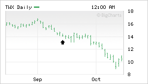 時代華納股價表現(xiàn)圖(箭頭指向處為9月15日當(dāng)天股價表現(xiàn))