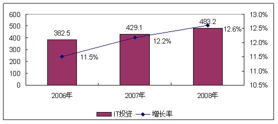 構(gòu)建服務(wù)型政府已經(jīng)成為我國電子政務(wù)系統(tǒng)的建設(shè)目標,政府信息化的不斷推進,使得中國電子政務(wù)IT投資逐年保持著穩(wěn)定的增長。2008年的電子政務(wù)建設(shè)是走向務(wù)實的一年,政府行業(yè)IT投入保持了12.6%的增長,總規(guī)模達到483.2億元。根據(jù)2008年底的調(diào)查反映出,2008年的中央財政和地方財政尤其經(jīng)濟發(fā)達地區(qū)地方財政的IT投入在平穩(wěn)中略有增長(上半年增長較快,下半年增長下降,部分地區(qū)負增長),電子政務(wù)工程的投資管理更加規(guī)范。