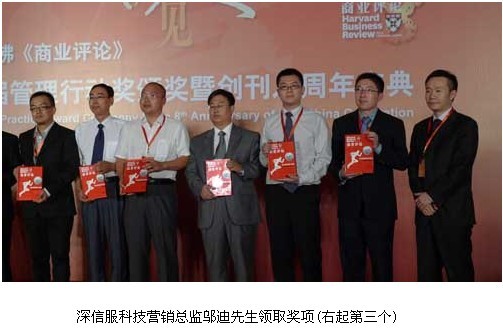 2010年9月14日,全球著名管理雜志《哈佛商業(yè)評論》在北京舉行了 “管理行動(dòng)獎(jiǎng)”的頒獎(jiǎng)典禮,深信服公司憑借著渠道變革的管理案例,同聯(lián)想集團(tuán)、東軟集團(tuán)等企業(yè)共同獲得了該榮譽(yù)。