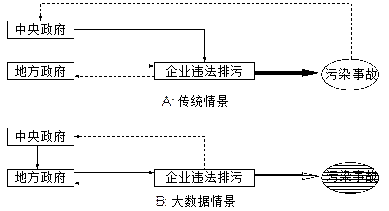 對(duì)于地方政府來(lái)說(shuō),大數(shù)據(jù)增強(qiáng)了地方政府環(huán)境治理能力。傳統(tǒng)的環(huán)境執(zhí)法取證方式受空間和時(shí)間的局限,而大數(shù)據(jù)通過(guò)突破時(shí)空局限降低執(zhí)法成本,提高了地方政府環(huán)境治理能力。如,污染物在線監(jiān)測(cè)大數(shù)據(jù)對(duì)企業(yè)排污狀況進(jìn)行實(shí)時(shí)記錄,執(zhí)法人員通過(guò)分析大數(shù)據(jù)篩選出超標(biāo)排放企業(yè),從而有針對(duì)性地開(kāi)展現(xiàn)場(chǎng)精準(zhǔn)執(zhí)法,提高了對(duì)企業(yè)違法排污行為的識(shí)別概率,增強(qiáng)了執(zhí)法能力。因而在大數(shù)據(jù)時(shí)代,地方政府的環(huán)境監(jiān)管責(zé)任并不會(huì)減輕,隨著履職能力的提高還會(huì)加強(qiáng)。