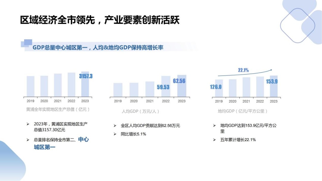 區(qū)域經(jīng)濟(jì)全市領(lǐng)先。2023年,黃浦區(qū)實(shí)現(xiàn)地區(qū)生產(chǎn)總值3157.30億元,總量排名中心城區(qū)第一,人均GDP貢獻(xiàn)達(dá)到62.56萬(wàn)元;黃浦區(qū)的創(chuàng)新創(chuàng)業(yè)能級(jí)也在加速提升,吸引了73家重點(diǎn)科創(chuàng)企業(yè)落地;科創(chuàng)服務(wù)等新動(dòng)能產(chǎn)業(yè)稅收貢獻(xiàn)大幅增長(zhǎng)、動(dòng)力強(qiáng)勁。