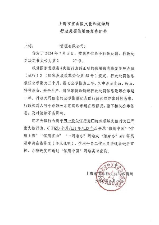 今年7月5日,寶山區(qū)文化和旅游局依照“誰處罰、誰負(fù)責(zé)”原則,“點對點”向區(qū)內(nèi)一家酒店管理公司送達(dá)首份“三書”,當(dāng)事人因違反《經(jīng)營高危險性體育項目許可管理辦法》相關(guān)規(guī)定被區(qū)文旅局執(zhí)法大隊處以罰款,除《行政處罰決定書》一并送達(dá)的還有《行政合規(guī)建議書》和《信用修復(fù)告知書》。