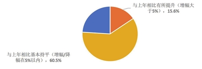 《報(bào)告》顯示,超七成受訪外貿(mào)企業(yè)預(yù)期今年外貿(mào)訂單量較上年持平或有所提升。其中,60.5%的受訪外貿(mào)企業(yè)預(yù)期本年度外貿(mào)訂單量“與上年相比基本持平”(增幅/降幅在5%以內(nèi)),15.6%的受訪外貿(mào)企業(yè)預(yù)期本年度外貿(mào)訂單量“與上年相比有所提升”(增幅大于5%)(如圖9)。