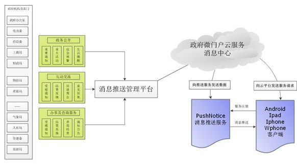 消息中心是政府移動互聯(lián)網(wǎng)服務(wù)的一種創(chuàng)新應(yīng)用。消息中心的建立讓政府服務(wù)從過去公布在網(wǎng)站上等待用戶訪問,變成了一種主動的服務(wù)模式。