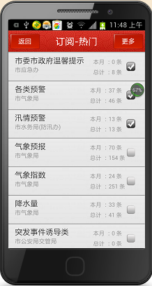 (2)個性化定制服務(wù)。用戶可以根據(jù)終端提供的個 性化信息服務(wù)的類別,選擇自己感興趣的內(nèi)容,如:生活資訊、橙色預(yù)警、政策速遞、政府公告等,這樣既滿足了公眾個性化的需要,又不會出現(xiàn)類似垃圾短信的擾民情況。