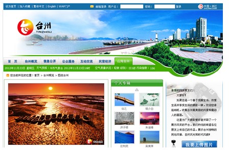 2012年,“中國(guó)·臺(tái)州”門戶網(wǎng)站又憑借《圖說(shuō)臺(tái)州》欄目獲得了品牌欄目獎(jiǎng),該欄目匯聚了一批來(lái)自不同崗位,不同地域的攝影愛(ài)好者,他們用極其敏銳的視角捕捉身邊的千姿百態(tài),記錄臺(tái)州的人文地貌和歷史景觀,述說(shuō)臺(tái)州滄桑巨變,表達(dá)內(nèi)心對(duì)幸福生活和真善美的追求,用鏡頭展示了“成長(zhǎng)中的臺(tái)州,鏡頭下的美學(xué)”,讓更多的人了解臺(tái)州、喜愛(ài)臺(tái)州。