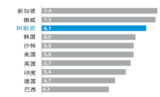 阿聯(lián)酋是全球數(shù)字政府發(fā)展中冉冉升起的領導者,數(shù)字化程度可與世界領先國家相媲美?!?012年聯(lián)合國數(shù)字政府調(diào)查》(United Nations E-Government Survey 2012)中,阿聯(lián)酋的在線交付服務排名第七,數(shù)字參與排名第六。
