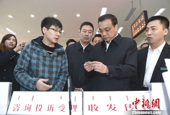 李克強(qiáng)總理近日到赤峰一政務(wù)服務(wù)中心考察