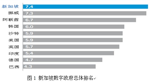 新加坡在數(shù)字政府總體表現(xiàn)中排名第一(圖1)。