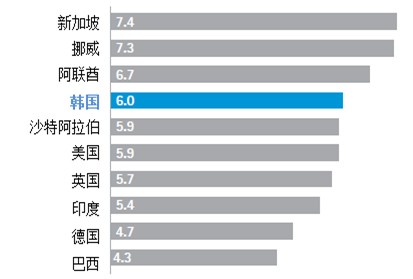 民眾希望政府能更高效。這一結(jié)果也反映了一個(gè)事實(shí),即在WEF的全球競爭力指數(shù)2012-2013排名中,韓國是本次調(diào)查的十國中政府開支最浪費(fèi)的國家。