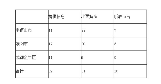 需要政府出面解決的留言共51條,占總留言的一半,這其中包含了投訴類和求助類,投訴表明留言者對(duì)所反映的問題存在較強(qiáng)烈的不滿情緒,求助則表明留言者一種無助的狀態(tài)。這兩類留言中通常會(huì)指出其認(rèn)為有過錯(cuò)的一方,并希望有關(guān)部門出面解決。對(duì)于被問政的官員和政府部門,解決此類問題的方向也比較明確,如濮陽網(wǎng)友反映某超市高音喇叭擾民,市公安局隨即派專人到附近調(diào)查,對(duì)造成噪音的超市業(yè)主進(jìn)行批評(píng)教育;金牛區(qū)網(wǎng)民投訴某洗浴中心提供賣淫服務(wù),并提供了手機(jī)號(hào)碼,公安機(jī)關(guān)根據(jù)此線索抓獲了涉嫌招嫖和賣淫的嫌疑人,并表示將加大監(jiān)督檢查力度。
