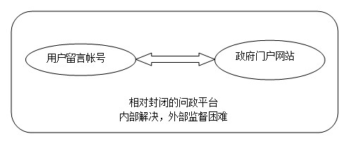 但相比于政府門戶網(wǎng)站,媒體發(fā)起的網(wǎng)絡(luò)問政平臺(tái)也具有自身的優(yōu)勢(shì)。政府通過其門戶網(wǎng)站與網(wǎng)民進(jìn)行互動(dòng),參與主體相對(duì)單一,在管理模式上相對(duì)封閉,與傳統(tǒng)行政過程中政府民眾二元關(guān)系差別不大;而且政府網(wǎng)站上的留言很多是不被公開的,只有政府一方可以看到,不公開就無法進(jìn)行監(jiān)督,這也體現(xiàn)出了管理模式的封閉化(如圖4所示)。