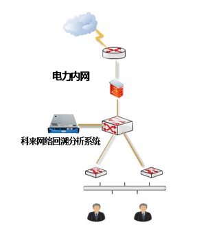 某電力咨詢院每天8點(diǎn)到9點(diǎn)之間與總部開視頻會議,雙方圖像出現(xiàn)馬賽克,嚴(yán)重時出現(xiàn)黑屏造成會議無法正常進(jìn)行,嚴(yán)重影響了正常辦公。此故障持續(xù)已有3年,網(wǎng)管通過各手段排查,但一直沒有找到問題的根本原因。近日,部署科來網(wǎng)絡(luò)回溯分析系統(tǒng)對內(nèi)網(wǎng)核心交換機(jī)總出口的流量進(jìn)行了7×24小時監(jiān)控,并通過回溯分析系統(tǒng)提取出問題時段的通信數(shù)據(jù),我們找到了導(dǎo)致用戶視頻會議馬賽克的主要原因。用戶的網(wǎng)絡(luò)環(huán)境示意圖如下: