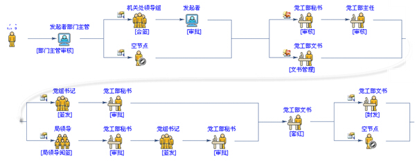 ?。?)空節(jié)點(diǎn)和手動(dòng)分支的使用使局機(jī)關(guān)與下屬單位、機(jī)關(guān)各部門間公文交換及對外部單位發(fā)文操作更加靈活簡單