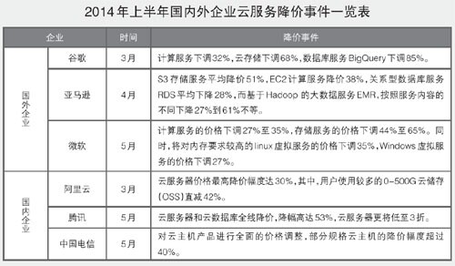 隨著云服務(wù)提供商的服務(wù)不斷完善,云計(jì)算市場呈現(xiàn)出群雄割據(jù)的態(tài)勢,價格戰(zhàn)則成為云計(jì)算巨頭競爭的重要手段。上半年,谷歌、亞馬遜、微軟等企業(yè)相繼大幅降低云服務(wù)價格,搶奪公有云服務(wù)市場。谷歌在3月將其云計(jì)算服務(wù)下調(diào)32%,亞馬遜云服務(wù)價格下降10%至65%不等,微軟的云存儲價格降幅最高達(dá)到65%。