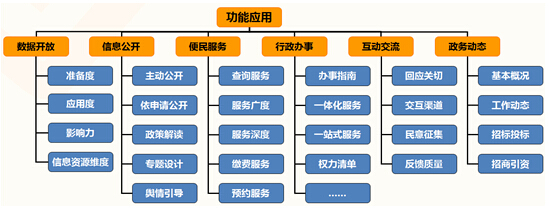 功能應用是政府網(wǎng)站發(fā)展建設的目的,是盤活政府網(wǎng)站信息資源,優(yōu)化政府網(wǎng)站組織架構,提升政府網(wǎng)站用戶體驗的重要,包括信息公開、數(shù)據(jù)開放、辦事服務、互動交流、政務動態(tài)5個要素。