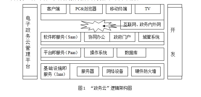 1.1 “電子政務(wù)云”的基礎(chǔ)硬件平臺。該平臺由各政府單位的中心機房、政務(wù)內(nèi)外網(wǎng)絡(luò)、路由設(shè)備和現(xiàn)有的若干臺服務(wù)器組建。