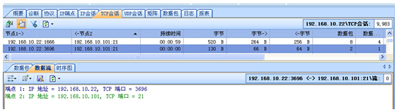 我們定位192.168.10.22這個IP,然后查看TCP會話選項(xiàng)。如下圖: