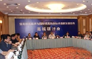 這是在,國(guó)家863計(jì)劃“基于程序行為自主分析判斷的實(shí)時(shí)防護(hù)技術(shù)”課題組召開的“病毒防范現(xiàn)狀與國(guó)際病毒防御技術(shù)最新發(fā)展趨勢(shì)”高端研討會(huì)上的一幕。