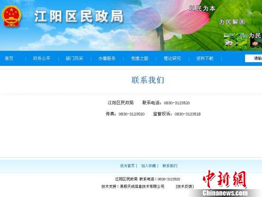 記者上午10時(shí)打開江陽區(qū)民政局官方網(wǎng)站時(shí),發(fā)現(xiàn)“聯(lián)系我們”欄目中,聯(lián)系電話和投訴電話已經(jīng)清晰可見,此外還增加了傳真號(hào)碼。