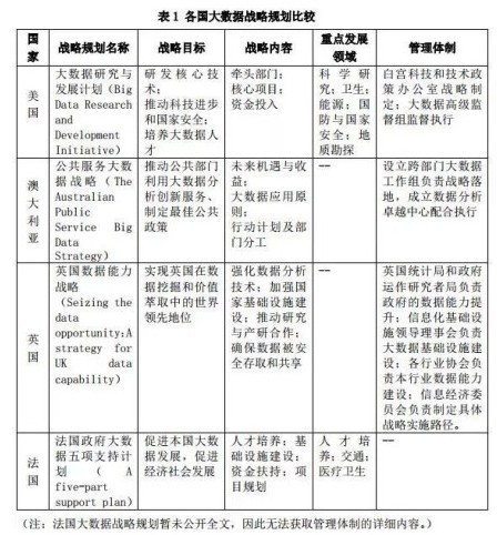 二、大數(shù)據(jù)戰(zhàn)略規(guī)劃比較分析