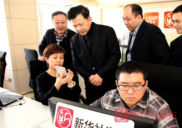 ↑1月11日,新華社副社長慎海雄到新華社新媒體中心,檢查中央紀(jì)委監(jiān)察部網(wǎng)站客戶端升級改版準(zhǔn)備工作。中央紀(jì)委監(jiān)察部網(wǎng)站客戶端由新華社新媒體中心承建,經(jīng)新華社技術(shù)局等各部門通力協(xié)作,于今年元旦上線試運行,廣受各界好評。