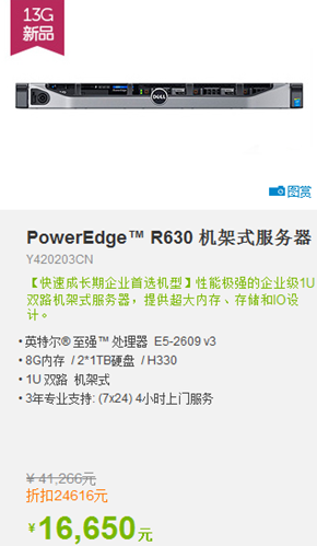 PowerEdge R630機架式服務(wù)器原價41,266元,現(xiàn)<標(biāo)配專享優(yōu)惠>即購立減24,616元! 現(xiàn)價16,650起