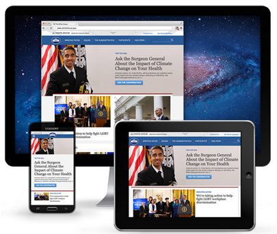 美國(guó)時(shí)間4月8日,我們發(fā)布了第一個(gè)響應(yīng)白宮主頁(yè)。這意味著:不管你使用臺(tái)式機(jī),筆記本電腦、手機(jī)或平板設(shè)備,whitehouse.gov登陸頁(yè)面顯示內(nèi)容的方式將達(dá)成一致。這也意味著,我們將能夠盡快的幫您找到您所需求的信息。