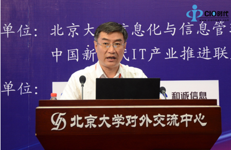北京大學(xué)信息化與信息管理研究中心主任王益明先生代表主辦方致辭,首先他非常感謝各位嘉賓的到來(lái),他還提到:研究中心自成立以來(lái),在電子政務(wù)領(lǐng)域也參與過(guò)智慧城市、電子政務(wù)頂層設(shè)計(jì)、政府云計(jì)算中心等相關(guān)的課題和項(xiàng)目,而今天的論壇則為大家搭建產(chǎn)學(xué)研用的交流平臺(tái),希望大家有所收獲!