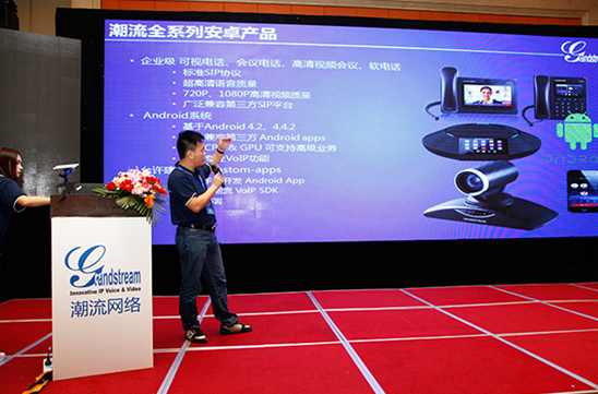網(wǎng)絡(luò)通信中國網(wǎng)(voipchina.cn)6月18日消息,2015年6月10日,潮流網(wǎng)絡(luò)在北京漢華國際飯店順利舉辦了2015年UCM統(tǒng)一通信方案暨新產(chǎn)品發(fā)布會(huì),本次發(fā)布會(huì)是由潮流網(wǎng)絡(luò)技術(shù)有限公司主辦,攜手戰(zhàn)略合作伙伴Broadsoft和眾多IP通信行業(yè)領(lǐng)先合作伙伴共同出席。潮流網(wǎng)絡(luò)隆重推出UCM一站式企業(yè)通信解決方案,及宣布新一代高清視頻會(huì)議系統(tǒng)GVC3200及新一代IP電話GXP16xx、安卓電話GXV3275 APP SDK、安卓軟電話GS-Wave等新產(chǎn)品,眾多耳目一新的增值解決方案吸引了賓客和合作伙伴的高度關(guān)注和認(rèn)可。