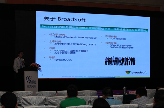 Broadsoft大中華區(qū)銷售總監(jiān)Sam Chu現(xiàn)場(chǎng)演講,介紹Broadsoft運(yùn)營商Host PBX整體解決,及結(jié)合潮流IP電話在全球運(yùn)營商大型成功案例。