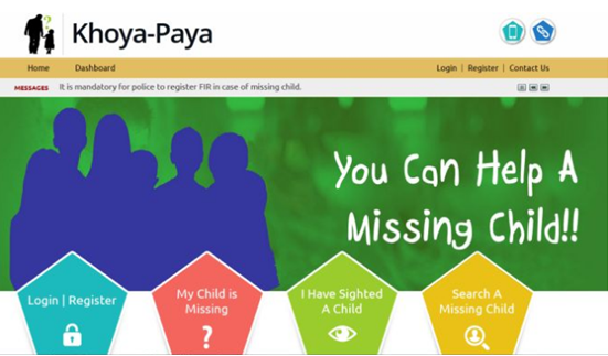 Khoya-paya(網(wǎng)站)是印度婦女和兒童發(fā)展部開設(shè)的一家網(wǎng)站,是政府主動著手幫助尋找失蹤兒童的一項(xiàng)重要舉措。