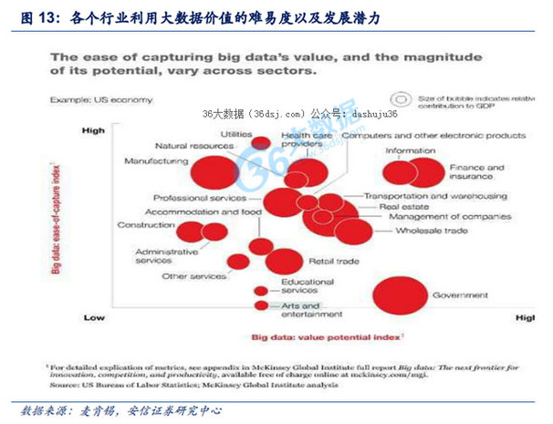 根麥據(jù)肯錫大數(shù)據(jù)研究報(bào)告指出, 各個行業(yè)利用大數(shù)據(jù)價(jià)值的難易度以及發(fā)展?jié)摿?對比下,政府利用大數(shù)據(jù)難度最低而潛力最大。