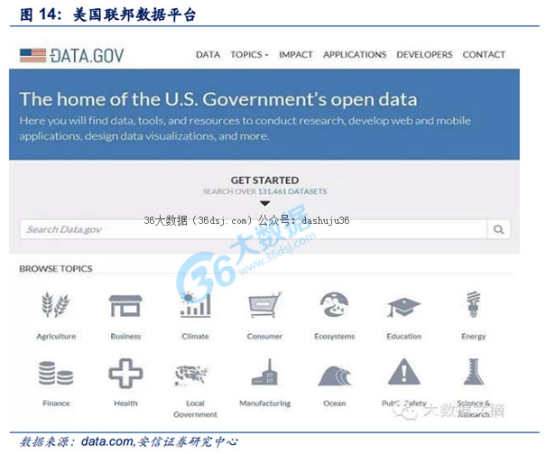 大數(shù)據(jù)時代,對大數(shù)據(jù)的開發(fā)、利用與保護(hù)的爭奪日趨激烈,制信權(quán)成為繼制陸權(quán)、制海權(quán)、制空權(quán)之后的新制權(quán),大數(shù)據(jù)處理能力成為強(qiáng)國弱國區(qū)分的又一重要指標(biāo)。國際上以美國為代表的發(fā)達(dá)國家紛紛布局大數(shù)據(jù)產(chǎn)業(yè),相繼推出大數(shù)據(jù)相關(guān)政策,大力支持大數(shù)據(jù)產(chǎn) 業(yè)在本國的發(fā)展。以美國為例,美國從開展關(guān)鍵技術(shù)研究、推動大數(shù)據(jù)應(yīng)用和開放政府?dāng)?shù)據(jù)三方面布局大數(shù)據(jù)產(chǎn)業(yè),尤其在開放政府?dāng)?shù)據(jù)方面非常積極,通過 Data.gov開放 37 萬個數(shù)據(jù)集,并開放網(wǎng)站的 API 和源代碼,提供上千個數(shù)據(jù)應(yīng)用。我們認(rèn)為,大數(shù)據(jù)未來將 引發(fā)新一輪大國競爭,大數(shù)據(jù)對整個世界的影響力會呈現(xiàn)爆發(fā)性增長趨勢,因此包括我國在內(nèi)的國家會在政策支持力度上不斷提升,大數(shù)據(jù)戰(zhàn)略將上升至國家戰(zhàn)略已毋庸臵疑。