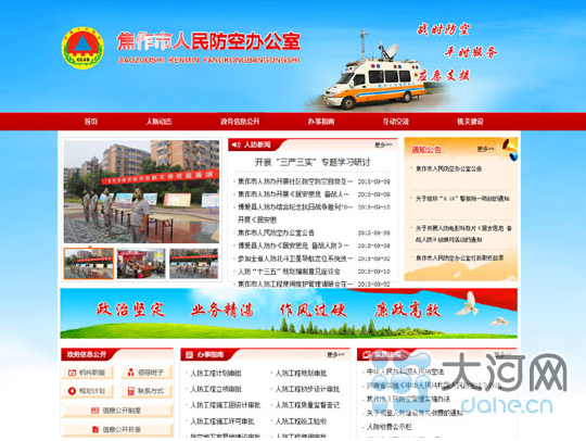 2015年9月10日,焦作人防辦新版網(wǎng)站如期上線。此次改版在頁(yè)面設(shè)計(jì)方面采用更為清晰合理的結(jié)構(gòu)布局和更適合人防形象的配色方案,整體視覺(jué)效果煥然一新。