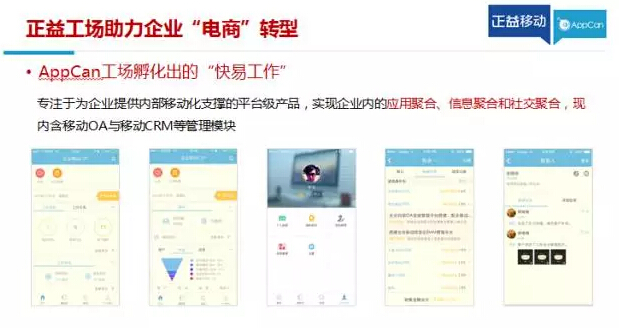 正益移動(dòng)作為國(guó)內(nèi)移動(dòng)平臺(tái)技術(shù)與移動(dòng)創(chuàng)新服務(wù)的領(lǐng)跑者,擁有國(guó)內(nèi)知名的移動(dòng)開(kāi)發(fā)和技術(shù)支撐平臺(tái)—AppCan,以及移動(dòng)互聯(lián)網(wǎng)應(yīng)用創(chuàng)新創(chuàng)業(yè)平臺(tái)—正益工場(chǎng),分別從技術(shù)和生態(tài)兩個(gè)層面支撐企業(yè)的“電商”轉(zhuǎn)型。