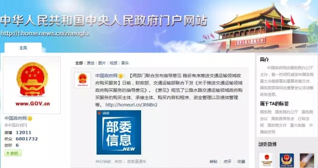 2013年10月開始,國務(wù)院官方微博分別在新華微博、人民微博、騰訊微博、新浪微博四大主體微博平臺上線,官方微信也同期推出,成為發(fā)布國務(wù)院領(lǐng)導同志政務(wù)活動信息、國務(wù)院重要會議信息、國務(wù)院和國務(wù)院辦公廳公開發(fā)布的政策文件及解讀稿件等政務(wù)信息的新媒體渠道。微博微信的推出拉近了中南海和普通民眾的距離,進一步提升了政府的透明度和公信力。